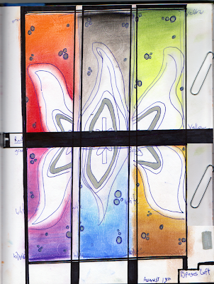 Finally I got to the point where I started to line it with a sharpie. This made me think of the type of vanity used to change clothes behind, and this would pretty vibrant design.